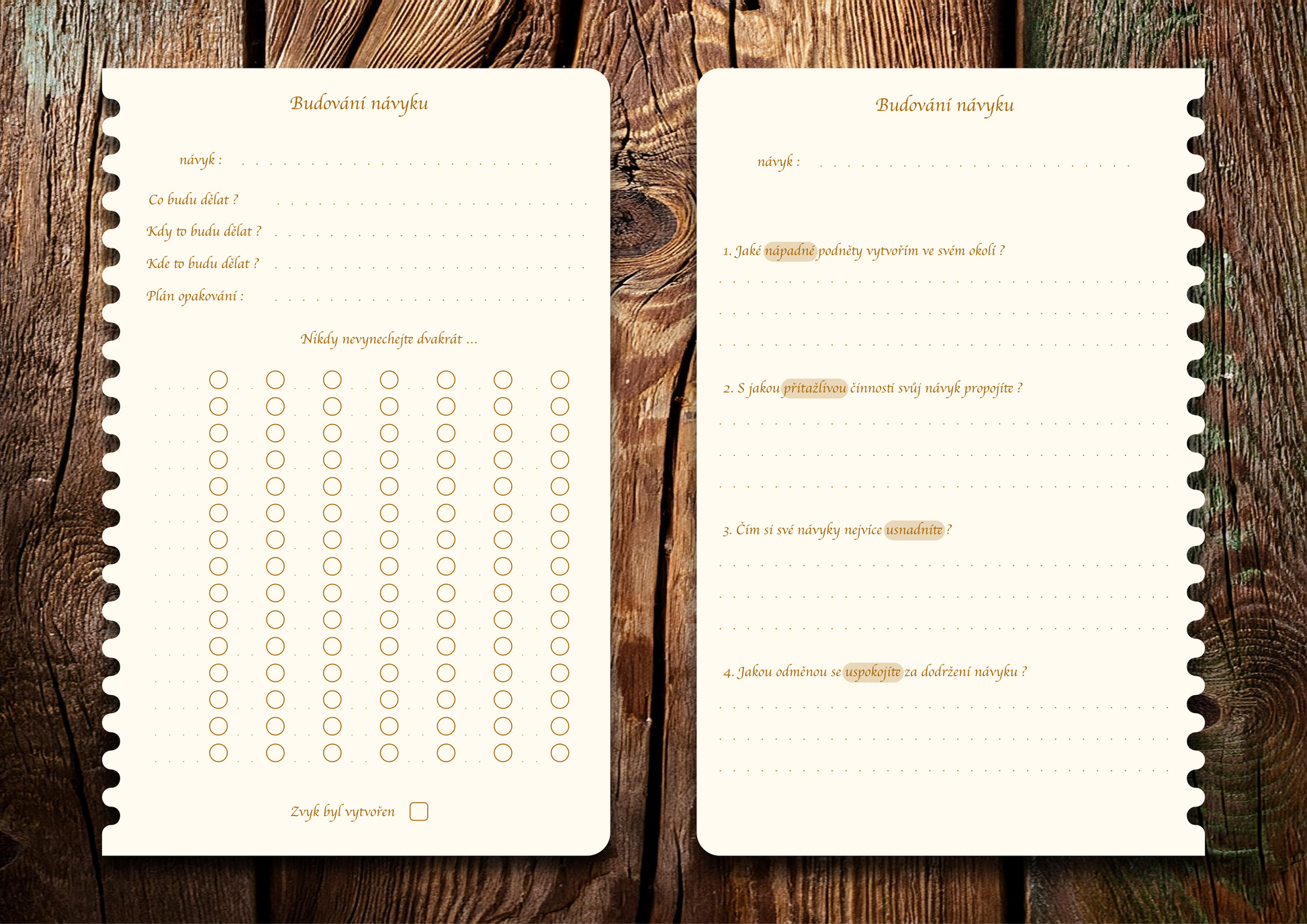 • Základní principy: Podle “Atomových návyků” jsme začlenili klíčové prvky jako jsou malé změny, spouštěče návyků a odměny, které vám pomohou udržet se na správné cestě.