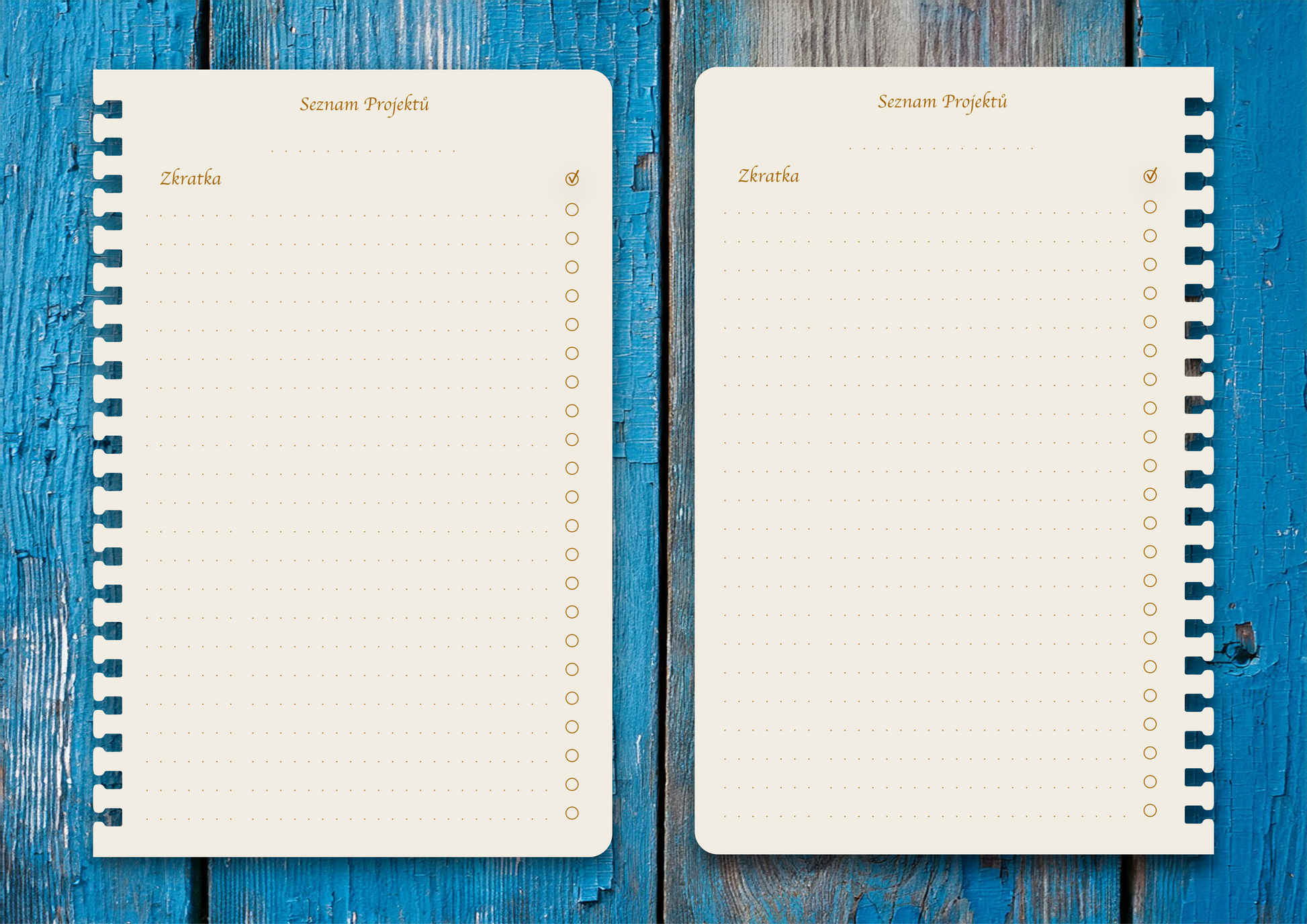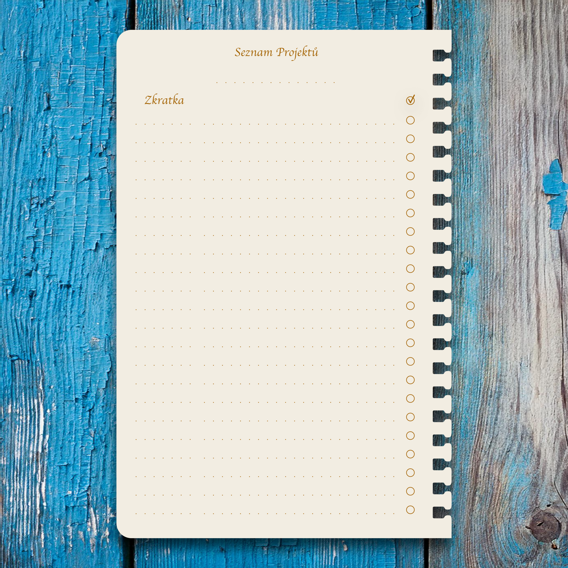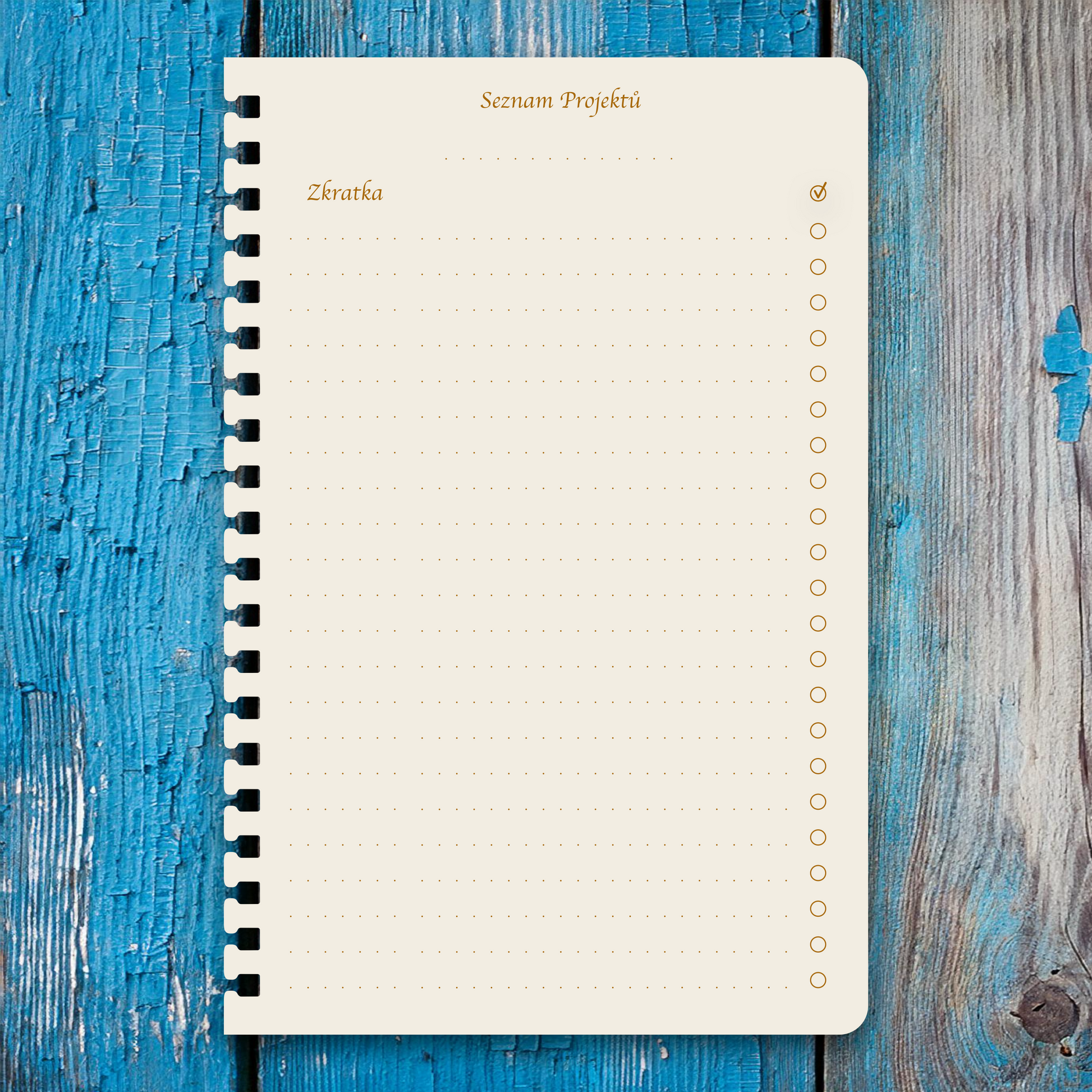 Tato karta slouží jako jednoduchý a přehledný seznam všech vašich projektů podle principů metody Mít vše hotovo (GTD). Pomůže vám mít všechny své rozpracované projekty na jednom místě a udržet si přehled o tom, co máte aktuálně v řešení.